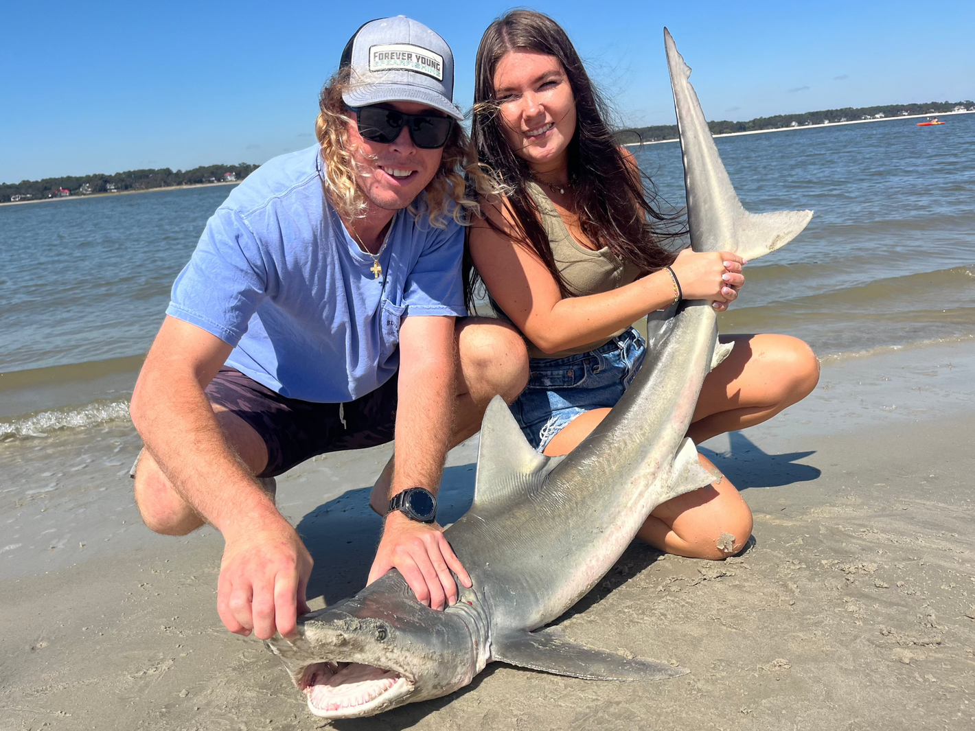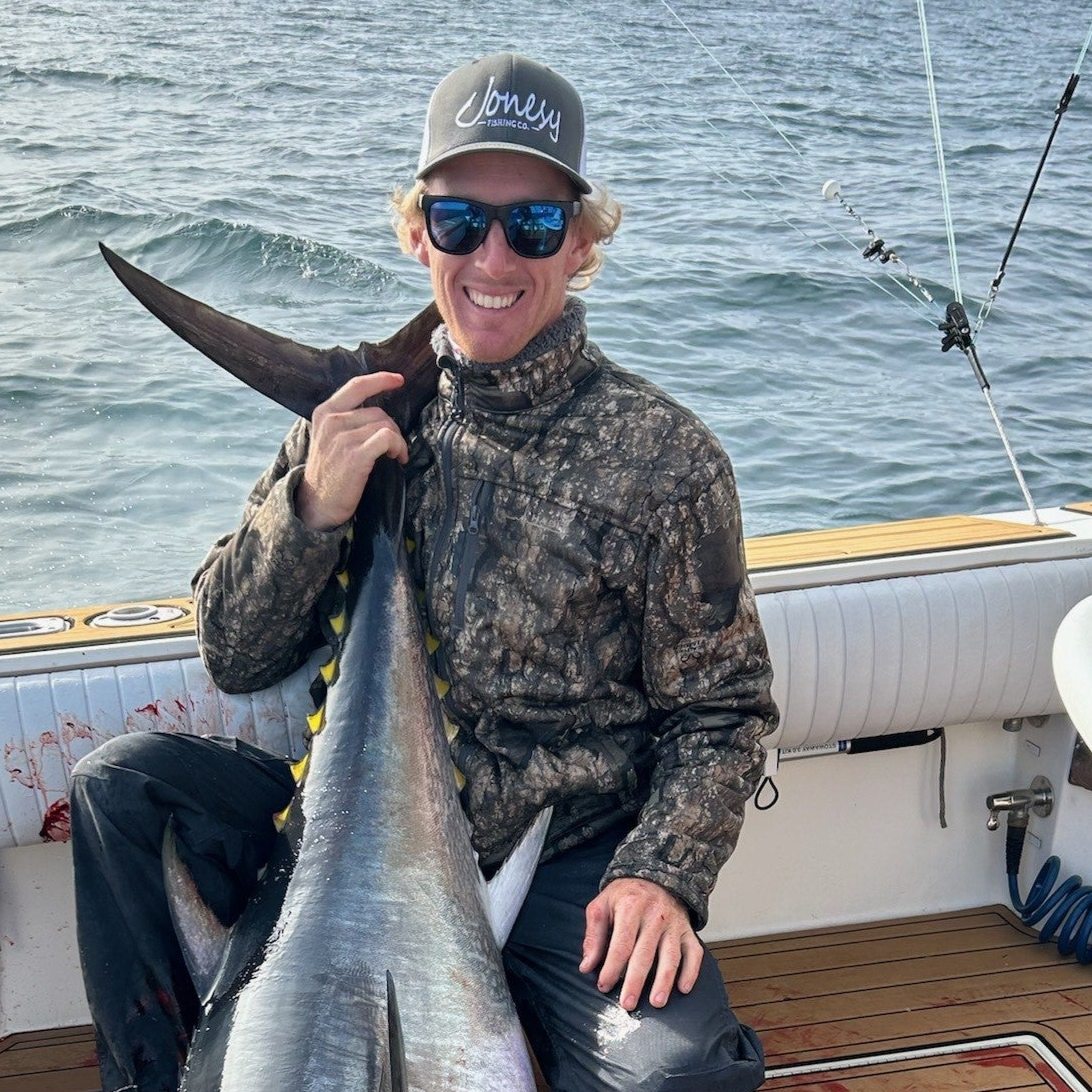 Josh in the classic snapback after their boat landed a bluefin tuna